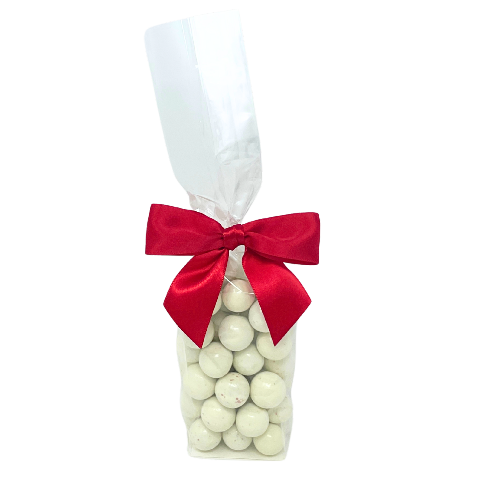 Ingredients: Dark chocolate (cane sugar, cocoa mass [processed with alkali], cocoa butter, butter oil, sunflower lecithin, natural vanilla extract, milk) white chocolate (cane sugar, cocoa butter, whole milk powder, lactose [milk], sunflower lecithin [an emulsifier], natural vanilla extract), corn syrup, cane sugar, cream (milk), palm kernel oil, color added (titanium dioxide, soy lecithin), peppermint inclusions (organic sugar, organic tapioca syrup, contain less than 2% of natural color [vegetable juices], organic glycerine [vegetable], organic peppermint flavor, organic palm oil), tapioca dextrin, tapioca syrup, natural flavors sea salt, confectioner's glaze, sunflower lecithin.
